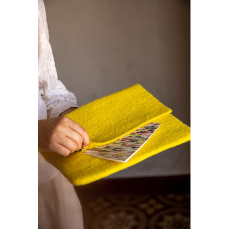 Hier ist die Hülle für iPad und Tablet aus Wollfilz, die handwerklich in Katmandu-Tal hergestellt wird. Einfarbig und mit unregelmäßigen Konturen, kombiniert diese Hülle Einfachheit und Zweckmäßigkeit. Sie ist aus einem einzigen Stück handgefilzt, sie spiegelt die althergebrachte Filzkunst wider und überzeugt durch ihr organisches Design.Mit einem kleinen Druckknopf lässt sie sich diskret schließen! Sie ist in mehreren Farben erhältlich und eignet sich für iPad sowie Android- und Windows-Tablets von 10 bis 12 Zoll.