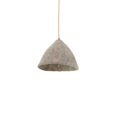 Der Filzlampenschirm TIPI S von MUSKHANE ist die richtige Hängeleuchte, um in Ihr Zuhause ein beruhigendes, gemütliches Licht zu bringen. Er ist in unseren Werkstätten in Nepal von Hand gefertigt und ist mit kleinen, unregelmäßigen Löchern übersät, die an eine ferne Konstellation erinnern, in der es sich gut leben lässt.