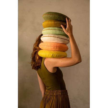 Borrowing the name from the famous coloured sweets, SMARTIES are little round cushions, perfect for adorning a bed, dressing a chair, covering a stool, or more simply, being placed on the ground. For this season, we’re offering felt tones that are both soft and warm, so that anyone can create a harmony of colours in their interior according to their wishes. You will particularly appreciate its elegant finish, with coloured stitching around the edge, created entirely by hand by our Nepalese artisans.