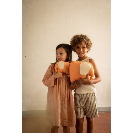 In many cultures around the world, elephants are a symbol of peace, luck and good fortune, arousing passions for this endearing animal. With the ELEPHANT PASU cushion, made with the deft touch of our Nepalese craftsmen, we wanted to capture the imagination of younger and older souls alike. Children will endlessly enjoy its trunk and big ears, while adults might use it to cushion their backs or bring a playful touch to their bedroom or living room.