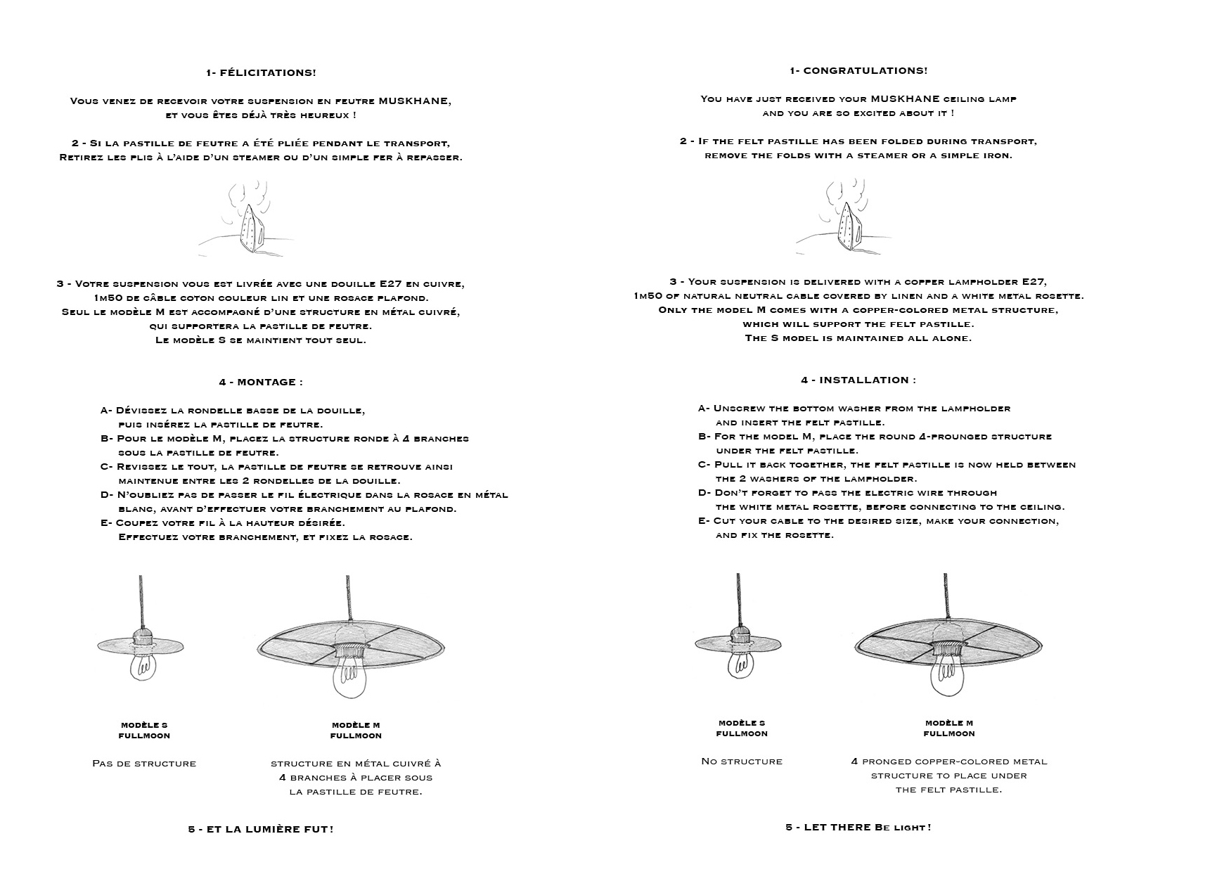 Here's the Fullmoon Hanging. With a little vintage nod to the retro hanging kitchen lamps, it charms with its simple and refined shape. Offered in two sizes, our lamp will easily integrate into the different rooms of your home. Its material, felt, accentuates the perfect balance between tradition, modernity, and simplicity. The hanging comes with an electrical assembly kit of one white metal rosette, a copper socket and 1.5 m of natural linen electric cable.