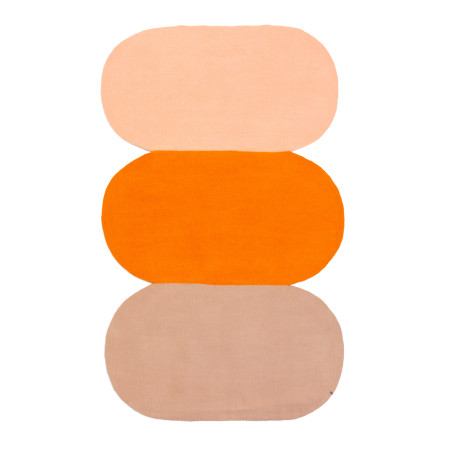 Finally the large rug that we've been dreaming of! As practical as it is beautiful, our new POP RUG promises to bring a twinkle to your decoration. Its graphic design, with 3 adjoining oval shapes makes it unique, in a clever mix of natural lines and a retro feel. We imagine it centred in the living room under a low table, along a sofa to create a real cosy corner, or in front of a bed, marking out a backdrop of softness. Made from woollen felt and created by hand in the Katmandu Valley, it will bring you some welcome comfort to your everyday life.