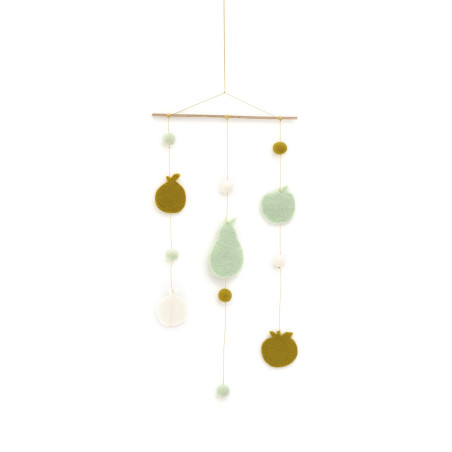 The JUNE decorative hanging for children in woollen felt creates a scene of pretty fruit in acidic colours and with simple outlines. You’ll also find the little felt pearls for which MUSKHANE are known. In sweet simplicity, it’s made from a rod of bamboo and woollen felt. Crafted by hand by our Nepalese artisans, this playful and joyful decorative hanging will blow a breeze of joy into a child’s bedroom, or why not into the kitchen?