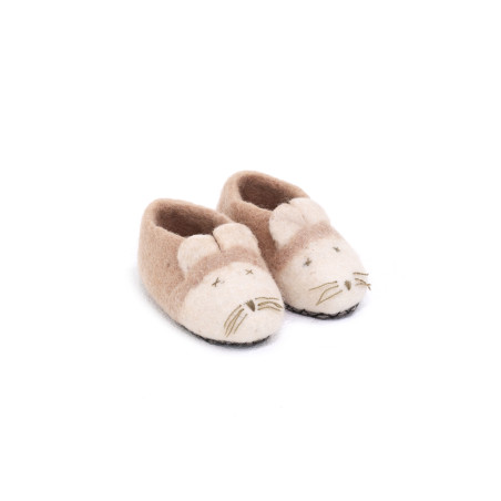 Hand-made in our workshops in Nepal, the MOUSE SLIPPERS let you give an original gift that will please little ones as much as big ones. Their material, felt, provides an unparalleled comfort no matter the season thanks to its heat-regulating quality. Our playful slippers are available in sizes 2 to 7.5, so they can accompany infants from birth until 4 or 5 years of age.