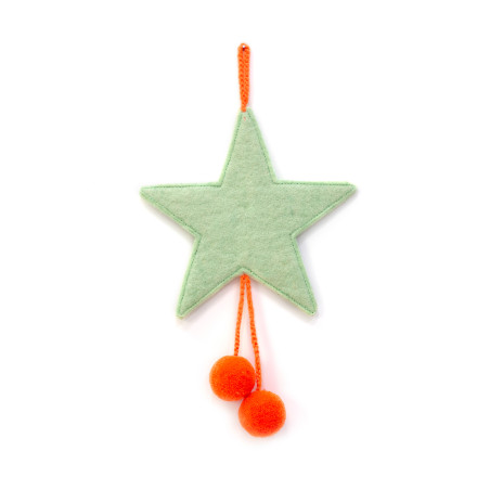L'ÉTOILE À POMPONS en feutre et laine de MUSKHANE est un accessoire de décoration qui embellit votre intérieur avec poésie. S'offrir ou offrir une étoile reste une attention qui fait toujours sourire. Être accompagné de son étoile, c'est important dans la vie ! Accrochée sur un mur, une porte ou une poignée, suspendue au-dessus d'un couffin, ou simplement dans l'air au bout d'un fil transparent, vous lui trouverez toujours une place.
