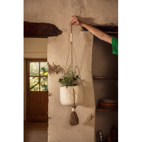 Créez une atmosphère unique en utilisant nos PANIERS KANGOUROU pour suspendre un panaché de plantes tombantes ! Réalisé par les mains expertes de nos artisanes népalaises, le PANIER KANGOUROU est un cache-pot à suspendre en feutre de laine. À l'aide de son attache raffinée en chanvre tressé, il peut être suspendu partout dans la maison. Dans le salon, la salle de bain, la cuisine ou la chambre… aucune pièce ne lui résiste. Disponible en deux tailles, il sublimera vos plantes et apportera une touche chaleureuse à la décoration. À suspendre en solo ou en duo : effet garanti !