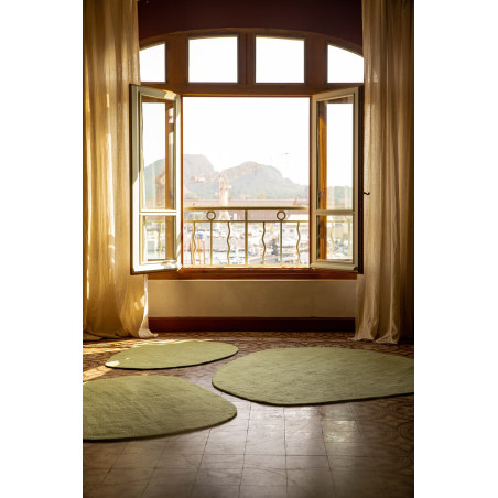 Le tapis Pebble, tel le petit galet qui l'inspire, peut être semé au gré de vos envies dans toute votre maison. Décliné en quatre tailles et une jolie palette de couleurs, sa forme organique et irrégulière, associée à la douceur du feutre, en font un objet de déco contemporain et singulier. Fabriqué artisanalement au Népal, il n'est pas de galet plus doux sous vos pieds !